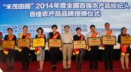 2015年10月24日,2014年度全國百強農產品經紀人、百佳農產品品牌授牌儀式”在江蘇省鎮江市隆重舉行 ,王曉芹董事長此次榮獲“2014年全國百強農產品經紀人”。